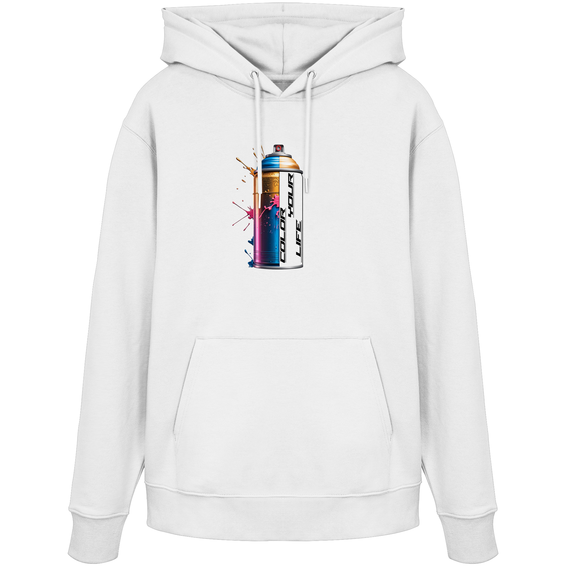 Du suchst nach einem Hoodie, der Kunst, Streetstyle und Nachhaltigkeit verbindet? Dann ist der „Colour Your Life“ Hoodie genau dein Piece. Das bunte Spraydosen-Motiv steht für Kreativität und Individualität. Perfekt für Freizeit, Festival oder City-Look.