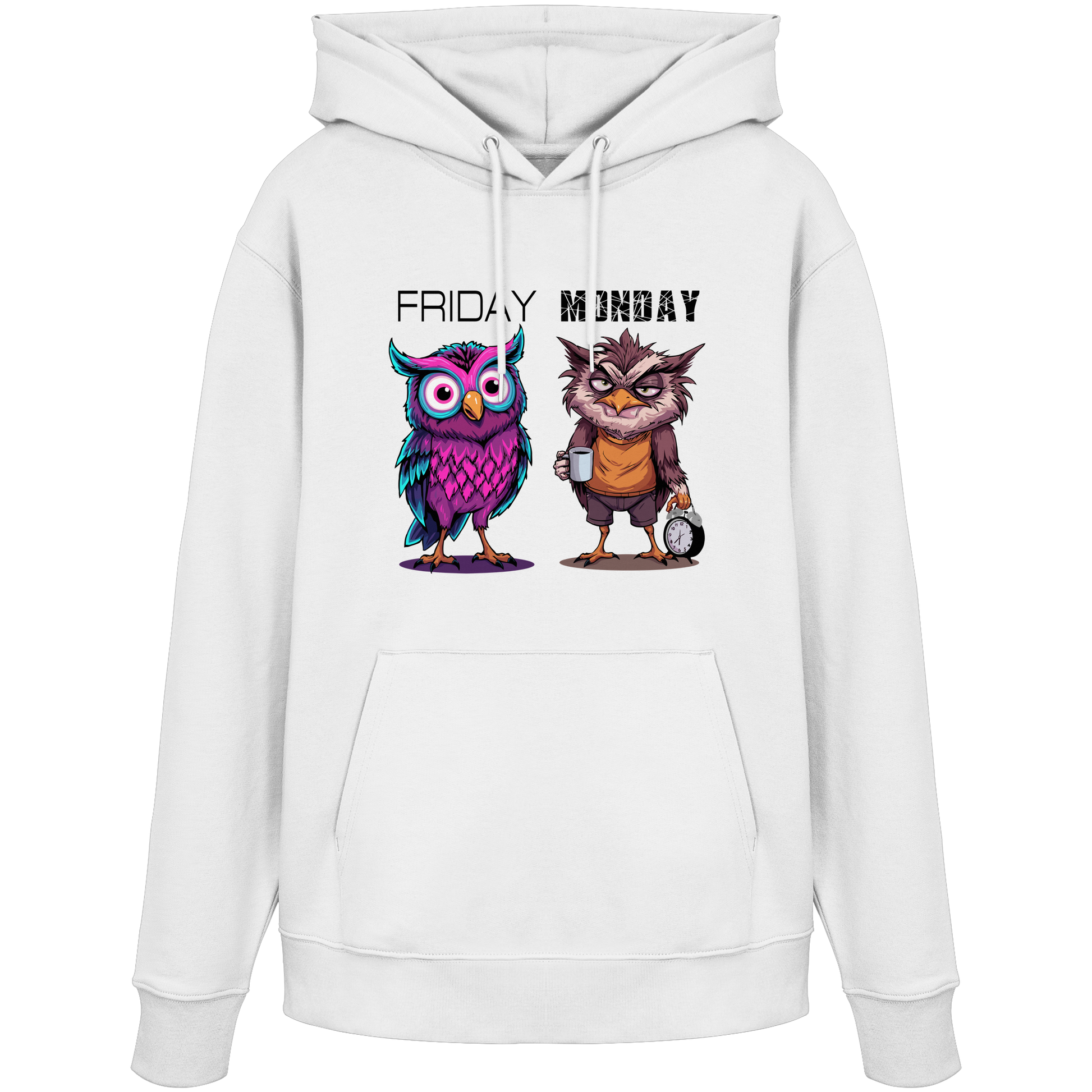 Zwei Eulen, zwei Stimmungen „Montag vs. Freitag“ bringt den Wochenstart und das Wochenende perfekt auf den Punkt. Ein Must-have für alle mit Humor und Sinn für Style.