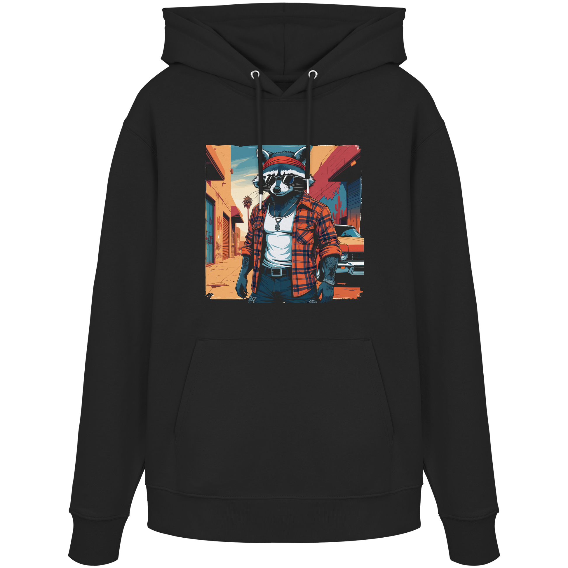 Der „Cool Raccoon“ Organic Hoodie kombiniert lässigen Streetstyle mit Humor. Das stylische Waschbär-Motiv mit Sonnenbrille sorgt für einen coolen, urbanen Look – perfekt für Alltag und Freizeit.